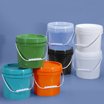 Suministro de fábrica 5L Cubos de plástico transparente de 1,32 galones Logotipo de impresión en colores personalizados Cubo de grado alimenticio de 5 litros con asas y tapas